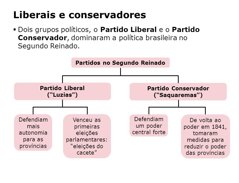 O Império Brasileiro, foi organizado pelos dois grande partidos políticos, o Partido Liberal (Progressistas) e o Partido Conservador (Regressistas), tanto os liberais quanto os conservadores adotavam a violência e a fraude para defender seus interesses.
